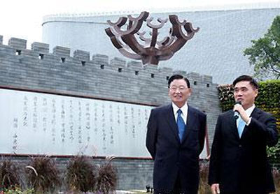 海基會(huì)董事長(zhǎng)江丙坤一行人在臺(tái)北市長(zhǎng)郝龍斌陪同下參訪花博的上海庭園及西安庭園。 圖片來源:臺(tái)灣“今日新聞網(wǎng)”