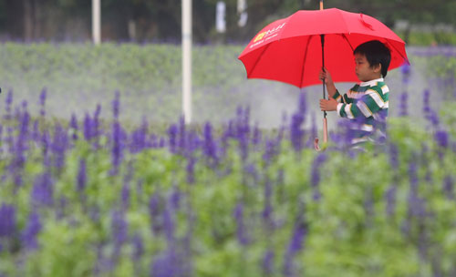 臺北"立冬"雨濛濛 民眾雨中徜徉花博花海(組圖)