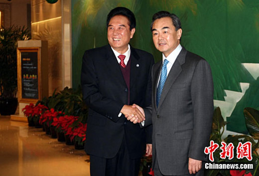 12月20日,海峽兩岸關系協會會長陳云林率團啟程赴臺北參加第六次兩岸兩會領導人會談,國臺辦主任王毅在北京首都機場送行。中新社記者 杜洋 攝