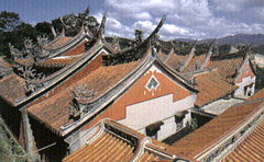 拱北殿是汐止廟宇群中頗負盛名的一座,層層疊疊雕飾精致的屋頂依山而筑,為隱藏在翠柏山勢間的一處勝境。由汐止市沿汐萬公路往烘內方向前行,即可見拱北殿牌樓,按指示牌順著柏油路上行,或取林蔭石階皆可登抵拱北殿,后者走來尤為涼爽。 拱北殿歷史將近百年,又俗稱汐止仙公廟,建于三秀山上,主奉孚佑帝君、釋迦牟尼和孔子;每年農歷4月8日釋迦牟尼佛誕辰,及農歷4月14日孚佑帝君誕辰等廟會時,均盛大公演歌仔戲,相當熱鬧! 殿前方為一寬闊平臺,可瀏覽山下風光,視野清晰;廟側多小亭,傍著山勢而建,從這里眺覽周遭群山,心胸舒暢;亭下小徑可通往附近榆樹林,清幽而寧靜。平日香客不多時,散步后山,耳聞誦經聲,不禁雜念俱除,心頭一片澄明。 乘車風向標: