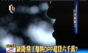 據臺灣TVBS電視臺報道,民進黨曾貸款6千萬新臺幣,而其中則隱藏著交換條件。爆料的黨工表示,交換條件就是民進黨中央人事上的安排。他指出,新任的民進黨文宣部主任孟義超,自己經營有廣告公司,專門舉辦選舉活動,而在民進黨貸款之后就擔任了該黨的文宣部主任,他說:“外界不會聯想嗎?借完錢以后多了一個文宣部主任”。