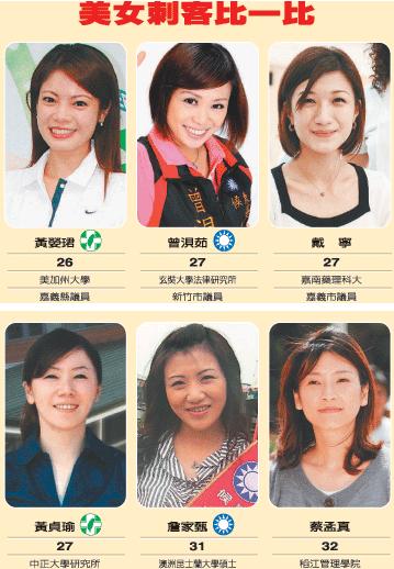 臺灣“三合一”選舉下月即將拉開帷幕,全臺各地出現一批美女候選人,她們被網友冠上“美女刺客”之名,用以形容以形象清新、年輕美麗打贏選戰的女候選人。(圖片來源:臺灣《聯合報》)