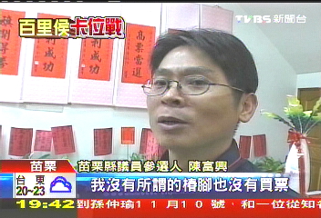 苗栗縣議員參選人陳富興則表示,自己沒有所謂的樁腳,也沒有買票。他稱自己從政以來,都是清清白白參選。