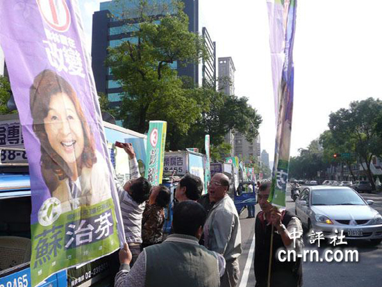 沒有參選的民進(jìn)黨臺(tái)北市議員和縣市長(zhǎng)候選人的宣傳車出現(xiàn)在臺(tái)北市街頭,讓臺(tái)北市也增添幾許選舉味。