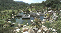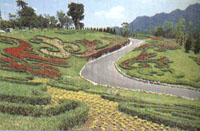 通過中式牌樓造形的入口,眼前假山嵯峨、清潭映天、亭臺水榭錯落其間,恍若進入紅樓夢里的大觀園,此即龍溪第一景——飛瀑景觀區,區內錦鯉魚池、九曲橋、客雅軒等處處皆景,充滿古典園林之美;順著游園動線來到風格各異的歐式花園,以法式造景強調線條與工整的手法,鋪陳出繽紛的花毯。