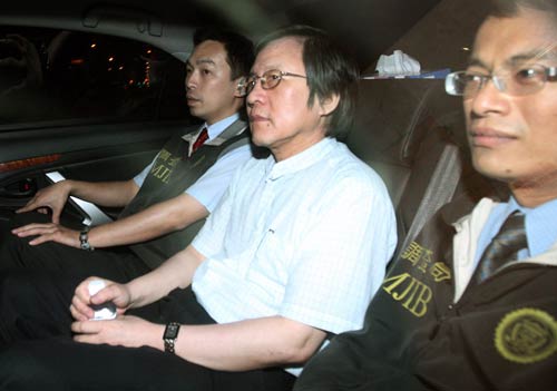 臺灣特偵組30日晚間傳喚臺當局前“國安會秘書長”邱義仁(中)及5名證人到案。檢察官偵訊后認為邱義仁涉嫌利用職務詐取財物罪嫌,于31日凌晨將邱義仁移送法院聲請羈押禁見。臺北法院審理后裁準,邱義仁坐進囚車,被送往臺北看守所。“中央社”圖