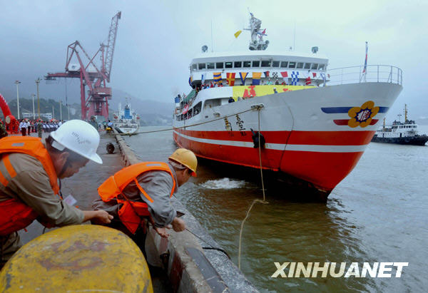 11月8日,從臺灣基隆港出發并彎靠馬祖福澳港的“臺馬”號客輪,經過10多個小時的航程后,安全抵達福州馬尾港。這是“兩馬”海上客運航線首次延伸至臺灣本島。 新華社記者 張國俊 攝