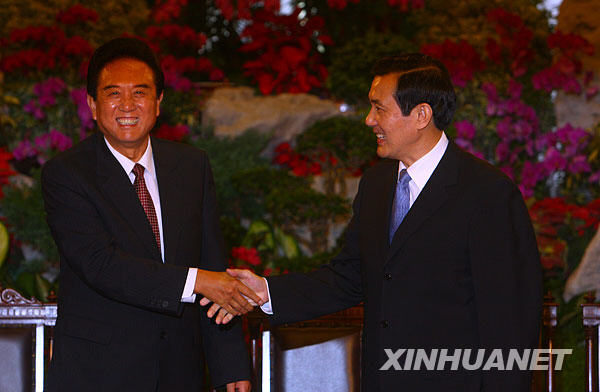 新華網快訊:馬英九6日上午在臺北賓館會見海協會會長陳云林一行。