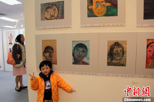 出自大陸、香港、澳門、臺灣的600多幅兒童畫,18日掛進了臺北孫中山紀念館逸仙書坊,“第二屆海峽兩岸少年兒童美術大展”開幕。中新社記者 關向東 攝