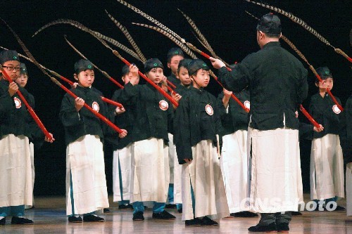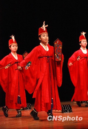 圖為來自韓國的專業舞蹈藝術團在表演祭祀孔子舞蹈。中新社發 閆曉虹 攝