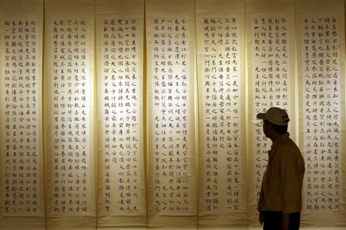 第7屆漢字文化節20日在“中正紀念堂”舉行,推出“四百年時空名家書法展”,展出媲美故宮文物的書法家真跡。 圖片來源:“中央社”