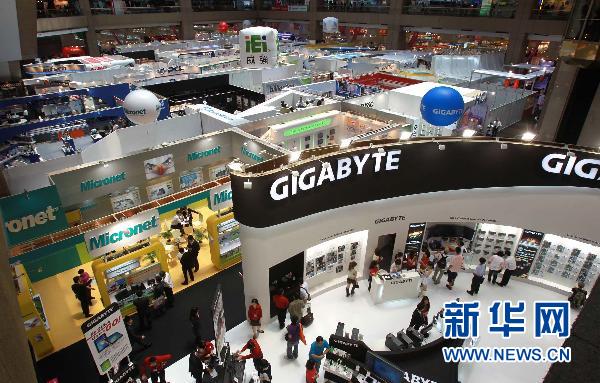 這是5月31日拍攝的展會現場。當日,亞洲規模最大的電腦展“2011年臺北國際電腦展”在臺北世貿中心展覽館(1、2、3號館)、臺北國際會議中心及南港展覽館開展。本次展會有5200個展位,吸引1800多家電子廠商參展。新華社記者 李明放 攝