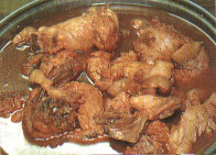 北部客家莊常見的蘸料,酸甜的滋味具開胃效果。桔醬系將酸桔洗凈、晾干,然后去籽加入鹽、糖等調味料,熟煮至爛,再去除渣滓即成。由于酸桔僅年產一次,客家人利用每年11、12月酸桔產期制作桔醬,然后分裝成瓶于一年中食用;因桔醬制作過程多手工,難大量生產,益顯珍貴。
