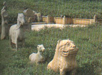 為臺(tái)灣唯一的孝子坊,葫蘆造型的夾柱石為其一大特色。李錫金14歲喪父,家境貧寒但事母至孝,長(zhǎng)大后自立營(yíng)商,家道開始興旺,曾與開臺(tái)進(jìn)士鄭用錫,分赴各地勸說、消弭械斗,地方士紳感其孝行義舉,乃推薦獲準(zhǔn)旌獎(jiǎng)。 鄭用錫墓 鄭用錫墓筑于同治8年(1869年),現(xiàn)為二級(jí)古跡,墓園占地頗大,墓埕上有兩排石人與石獸雕刻,及一對(duì)石刻文筆望柱。石武人肅穆剛毅,石文人敦厚儒雅,服飾及佩帶物俱全,衣褶流暢自然,石馬、石羊、石虎的造型樸拙而不失細(xì)致,整體雕刻水準(zhǔn)是全臺(tái)古墓中最高的,反映出古代的官家排場(chǎng)。 乘車風(fēng)向標(biāo):