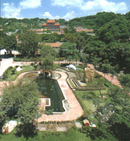 臺灣民俗村占地52公頃,創園初期以展現臺灣300年來的人文景觀、民俗風情為主題,除構筑許多臺灣早期建筑外,并穿插各式民俗游藝及民間生活等活動,成為具鄉土特色的園邸。近年,更陸續增辟了許多新奇刺激的游樂設施,是中部休閑旅游的好去處。 想了解臺灣、回顧臺灣,可從“昨日臺灣區”開始,此區為臺灣民俗村的游園重頭戲。由入口處即見慶豐城門,城門內設有文獻館,陳列臺灣300年來的文獻與文物;為了保存面臨失傳的民間手工技藝,民俗村將各種古老的坊間制造業,如錦絮坊(棉被間)、益壽齋(面線間)、金利號(打鐵間)、薛濤莊(制紙間)、意林(彩繪坊)、甘露坊(醬油間)、延年齋(米粉間)等,按先民的生活方式重現,現場也有師傅展現制造絕活;行走其間,讓人回味古早生活的純樸。 把臺灣300年來各時期的代表性建筑群聚重現,亦為民俗村的一大特色,園方也把臺灣各鄉鎮的老建筑拆遷來重建,如臺西河堂(彰化三合院)、臨濮堂(鹿港古厝)、新北投車站、麻豆古厝、北斗奠安宮等;或以相同建材按原模式重建,如澎湖進士第、隴西堂(彰化四合院)、天水堂(北埔客家莊)、鹿港不見天街……,讓游客重溫傳統老厝街坊之美。 除古屋藝館之外,在“今日臺灣區”里還辟有多項機械游樂設施。此外,驚險刺激的航海王歷險館、富田園野趣的自然教育區,以及清溪竹林、宛如福地洞天的山林勝跡區,構筑出一座座引人入勝的神奇世界。園內也收攬了眾多臺灣小吃美食及中西餐飲,一座現代式的合院建筑一—嘯月山莊,則是渡假下榻的食宿中心;而園內也辟有一處大型購物中心,展售仿古家具、臺灣傳統工藝品、小飾物等,意猶未盡的游客,可在此采購一番,為臺灣超過空之旅留下紀念。 臨濮堂  拆遷自風情純樸的鹿港小鎮,封閉式的空間格局及含蓄典雅的色彩,整體顯得古雅端莊;而細致的木雕、彩繪,也值得細細觀賞,現場還展售傳統刺繡作品。 澎湖進士第 聘請澎湖老師傅督造仿建的蔡進士第,全宅皆以澎湖咾咕石筑成,屬于四合院式建筑;矮小的格局,適于澎湖多風沙的惡劣氣候,具有濃厚的海島人文色彩。 麻豆古厝  麻豆林家是南臺灣望族,原有七座大厝,本棟為五房損贈給民俗村復建。老厝為二進四合院,雕刻及彩繪頗為精致,是園區內的代表性建筑之一。古厝里每天皆依古禮舉行婚禮,新人一身的鳳冠紅袍,隨從抬著聘禮,一路敲鑼打鼓,熱鬧非凡。 鹿港不見天街 仿鹿港天后宮前的五福街、九曲巷所建,是清代臺灣最長的商業街,為防止風沙及下雨,特在街道上加蓋屋頂,形成著名的不見天街景觀;內有隘門、慕仁巷等古跡,街道兩旁郊行林立,可想見當時車水馬龍的盛況。 宗圣劇場 占地2000多坪的宗圣劇場,是臺灣民俗村內主要的表演場地,定期推出國內外民俗技藝表演,如歌仔戲、布袋戲、花鼓、雜耍特技等。 乘車風向標: 由彰化火車站前搭往臺灣民俗村的彰化客運,或由臺中火車站前搭往臺灣民俗村的臺中客運(此路線僅假日行駛),可抵臺灣民俗村。