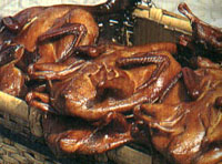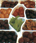 宜蘭名產(chǎn)鴨賞、膽肝、蜜餞和蘇澳羊羹遠(yuǎn)近馳名,合稱宜蘭四寶。 鴨賞是宜蘭最獨(dú)特的特產(chǎn),昔日宜蘭多雨多池塘,養(yǎng)鴨事業(yè)興盛,鴨子宰殺后,只能以鹽腌存慢慢食用,因而發(fā)展出制作鴨賞的技術(shù)。鴨賞系是老菜鴨涂上香料,用竹片撐開加以曝曬,再放入鐵皮烤箱中以炭火燃燒甘蔗熏烤而成。鴨賞可切成細(xì)絲加蒜下酒,也可用燉、煎、炒等吃法,風(fēng)味獨(dú)特。 膽肝即咸豬肝,是將豬肝浸漬于醬油、香料中,經(jīng)曝曬重壓而成。膽肝依質(zhì)感分柴肝及粉肝二種,前者含水量少,口感較硬且較咸,粉肝則恰恰相反;食用時以水蒸透后,再切片配以大蒜、生姜、酒、糖,是下酒、配飯的好食物。 蜜餞以宜蘭盛產(chǎn)的金棗、李子腌制而成,尤以金棗糕、李仔糕素離開盛名。宜蘭市的橘之鄉(xiāng)蜜餞形象館不僅可買到各種可口的蜜餞,還可了解其制作過程。 蘇澳羊羹香潤可口,甜度適中,據(jù)說因蘇澳冷泉水密度較重,使得蘇澳的羊羹口感特別細(xì)滑,中山路的鳳鳴羊羹本鋪和蘇澳制果廠為知名老店。