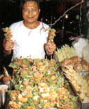 以羅東公園為核心的羅東小吃,集傳統與現代各家小吃于一體,日夜皆營,知名度頗高,是多數人走訪羅東必到之處。 作為木材集散地的羅東發展成為工商重鎮后,鎮上逐漸聚集商家、小吃攤,林場肉焿、崔記早點便是著名的食攤;近年來,隨著觀光事業的推進,羅東公園周邊的公園路、中山路一帶,更進而規劃為觀光夜市,店面整齊劃一,著實吸引不少人潮。 每至傍晚,夜市內成排的商家開始點亮燈火,而人潮也陸續涌入,夜市內幾乎都是小吃攤,蚵仔煎、擔仔面、虱目魚……都有著濃濃的鄉土味。雖名為夜市,但其實許多店家在中午,甚至早上就開始營業,如知名的張秀雄咸米苔目即是,因此,不論何時到來,都有多種美味可供選擇。 隆新一串心 地址:興東路、民生路交叉口(羅東公園口) 營業時間:1700~2400 店內特色:一串心 一串心又名豆腐卷,是蘭陽地區特有的小吃。一串心即是將空心的油豆腐,填入煮熟的粉腸、香腸、豬肺或叉燒肉等主料,搭上蒜苗、韭菜等配菜,再以長竹簽串起。宜蘭賣豆腐卷的店攤不少,但就數羅東公園入口處的隆新一串心最知名。 林場肉焿 地址:中正北路109路 電話:(03)955-2736 營業時間:0800~1800 店內特色:肉羹 林場肉羹的好吃,賣的無非是40年的老經驗,精挑的瘦肉、道地的做工,外加紅蕃薯粉這號大功臣,揉捏出來的肉羹,硬是外滑內嫩、貨真價實。 張秀雄咸米苔目 地址:公園路40號 電話:(03)954-7533,956-3468 營業時間:0600~1130 店內特色:咸米苔目、粉腸肉、黑白切 位于羅東夜市內,張秀雄咸米苔目賣的卻是早市。之所以能長賣40多年,主要在其獨到的選米、制作出彈性好、口感佳,且久煮不爛的米苔目,加上以純肉精燉的香醇湯頭,十足夠味。 崔記早點 地址:公正路37號 電話:(03)954-4481 營業時間:0400~1300 店內特色:煎包、豆漿 店齡近40年的崔記早點,由于遵循山東口味、手工制作,不論豆漿、煎包、酥餅、燒餅,都是餡料好、味道佳的點心,其中尤以煎包最受顧客青睞。 |