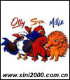 2000年雪梨奧運會的吉祥物,以澳大利亞特有的 3 種動物來做代表,分別是幾乎純種的鴨嘴獸(Syd)、澳大利亞特有種大型鳥類笑翠鳥 ( Olly ),以及也是澳大利亞特有動物頻臨絕種的針鼴 (Millie),英文名稱分別取名于雪梨、奧林匹克及千禧年的字頭,來當吉祥物的名字。 |