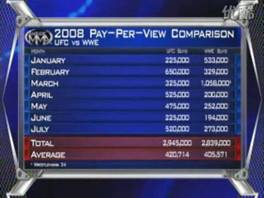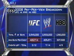 2008年1-7月UFC,WWE和HBO的PPV收入對比(摘自綜合搏擊統計)