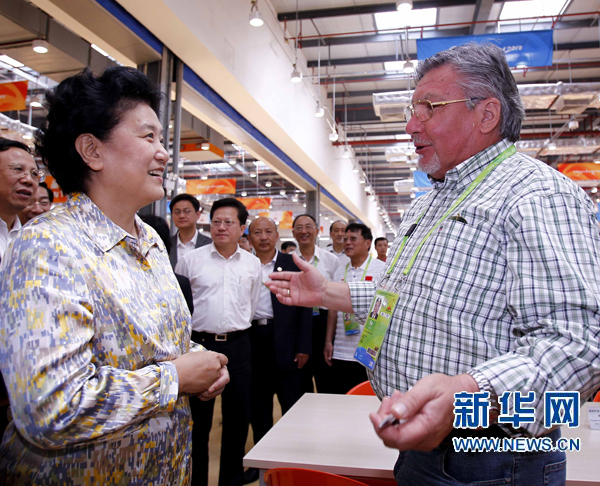 11月10日至11日,中共中央政治局委員、國務委員劉延東在廣州考察并專題研究亞運籌辦工作。這是11月11日,劉延東在廣州亞運會運動員村運動員餐廳與一位準備就餐的外國體育代表團官員交談。新華社記者陳建力攝