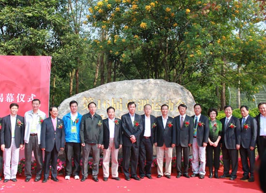 10時55分,伴隨著絢爛的禮花紛飛,2010年第16屆亞運會高爾夫競賽及訓練場館正式揭幕。袁偉民、蔡振華、林木聲等共同為亞運球場紀念石揭幕,并與在場嘉賓合影留念。十余家電視、報紙、雜志、網絡媒體來到現場報道揭幕儀式盛況,見證了這一重要的歷史時刻。
