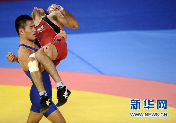 11月23日,中國選手高峰(左)抱起受傷的伊朗選手賽義德 艾哈邁迪 扎林科拉伊離場。當(dāng)日,在第16屆亞運會摔跤男子自由式60公斤級銅牌賽中,伊朗選手賽義德 艾哈邁迪 扎林科拉伊腿部受傷,堅持完成了比賽,比賽結(jié)束后,場上的對手高峰把他抱下了賽場,展示了友誼的力量。高峰以3比1戰(zhàn)勝賽義德 艾哈邁迪 扎林科拉伊,獲得銅牌。新華社記者燕雁攝