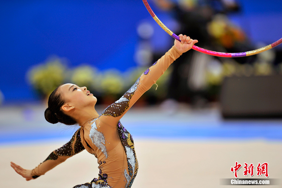 蘿莉,英文名為L(zhǎng)OLI,本意指12歲以下的小女孩,后泛指天真可愛(ài)的小女生。15歲的韓國(guó)藝術(shù)體操選手孫妍在,憑借著修長(zhǎng)的身材、姣好的面容,以及明亮的眼眸,一直被人稱(chēng)為“藝術(shù)體操屆的金妍兒”。堪稱(chēng)廣州亞運(yùn)會(huì)“小蘿莉”中的NO.1。圖為孫妍在在亞運(yùn)藝術(shù)體操比賽首日的精彩表現(xiàn)。中新網(wǎng)記者 金碩 攝