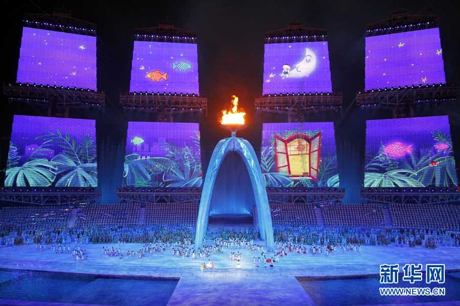 11月27日,第16屆亞運會在廣州市海心沙島舉行閉幕式。這是文藝表演《請把你的歌留下》。 新華社記者公磊攝