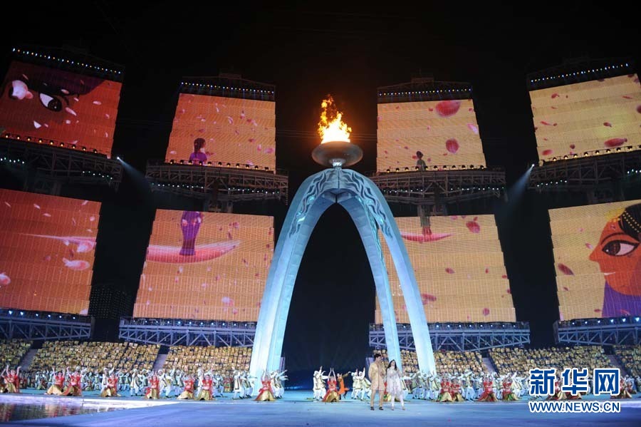11月27日,第16屆亞運會在廣州市海心沙島舉行閉幕式。這是現(xiàn)場上的文藝表演。 新華社記者公磊攝