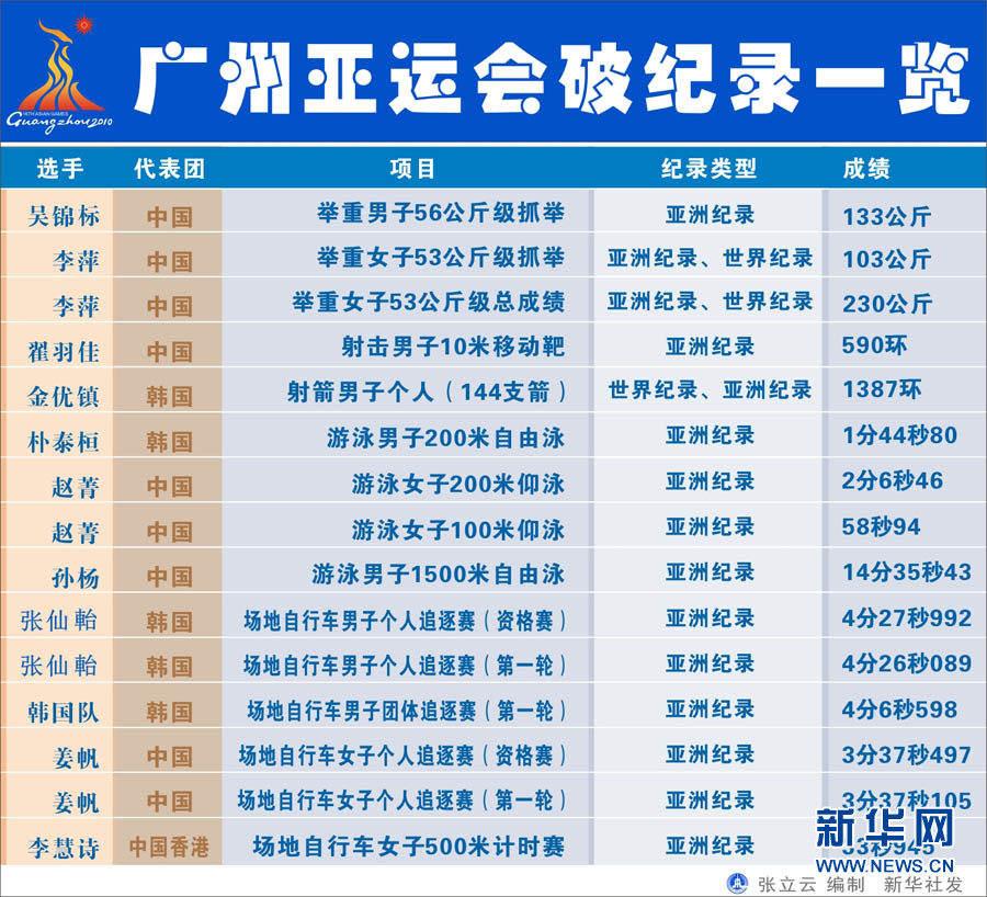 【亞運(yùn)會(huì)盤點(diǎn)】廣州亞運(yùn)會(huì)破紀(jì)錄一覽