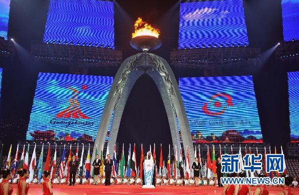 11月27日,主火炬塔的亞運圣火熄滅。當日,第16屆亞運會在廣州閉幕。 新華社記者楊磊