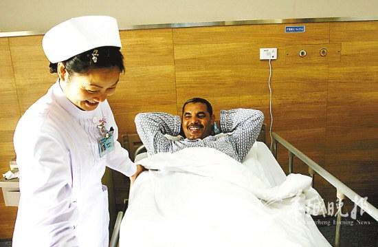 11月19日晚,聞?dòng)嵍鴣淼膩唺W理事會(huì)醫(yī)務(wù)委員會(huì)卡塔爾籍官員在看望了Saleh Noor后,稱贊:“醫(yī)院診斷準(zhǔn)確、實(shí)施手術(shù)完美、醫(yī)護(hù)服務(wù)周到,病人在醫(yī)院病房享受到‘國王’一樣的禮遇。”