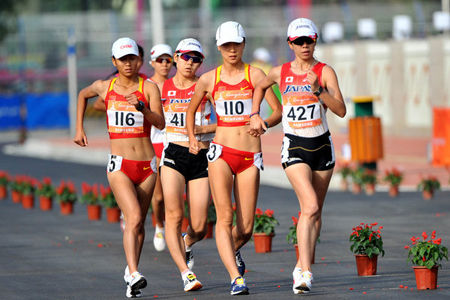 廣州亞運會女子20公里競走決賽,劉虹在18公里后第一,日本選手渕瀨真壽美第二。