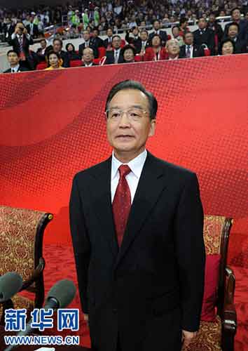 11月12日晚,第16屆亞洲運動會開幕式在廣州海心沙島隆重舉行。這是國務院總理溫家寶出席開幕式。 新華社記者張鐸攝