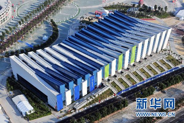 圖為航拍的廣東奧體游泳館(攝于10月29日)。在廣州亞運會期間,廣東奧林匹克體育中心場館群將舉行田徑、游泳、射擊、網球、棒球等項目的比賽。新華社記者劉大偉攝