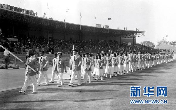 第一屆亞運會于1951年3月4日至11日在印度首都新德里舉行,11個國家和地區的489名運動員參賽。第一屆亞運會共產生57枚金牌,獎牌榜前三名為日本、印度和伊朗。在這屆亞運會上,日本代表團獲得24枚金牌,開始了對亞洲體壇長達30年的“統治”。圖為印度代表團在第一屆亞運會開幕式上入場。新華社發