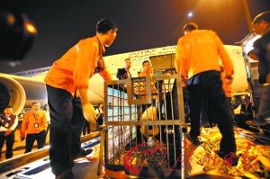 亞運熊貓寶寶搭乘專機飛抵廣州
