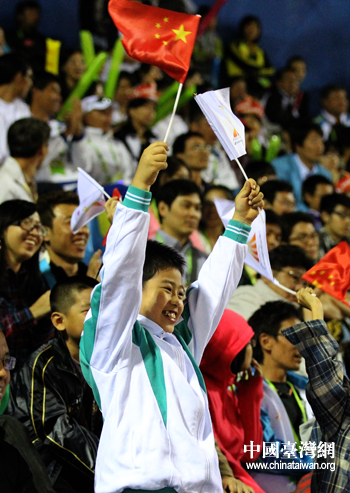 廣州亞運棒球決賽吸引了大批觀眾到場觀戰(zhàn)。圖為給中華臺北隊加油的大陸小觀眾。(中國臺灣網(wǎng) 沈鵬 攝)