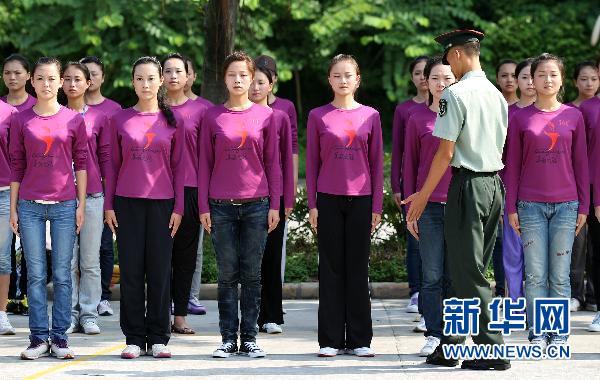 10月2日,廣州亞運會開閉幕式引領使者在部隊教官的帶領下進行軍訓。廣州亞運會開閉幕式引領使者選拔活動在廣州長隆旅游度假區舉行,來自全國13個賽區選拔出來的百名引領使者候選人經過15天的集訓,將有45名選手成為廣州亞運會開閉幕式引導各參賽代表團入場的引領使者。新華社記者劉大偉攝