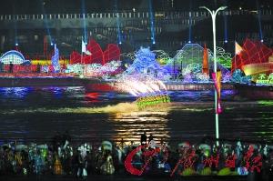 花船巡游將成為一道亮麗的風景線。還有兩艘特別的船,其一是在演出過程中發揮重要作用的帆屏,LED帆屏一展開,海心沙就變成了一艘大船,另一個是艘巨大的道具帆船。