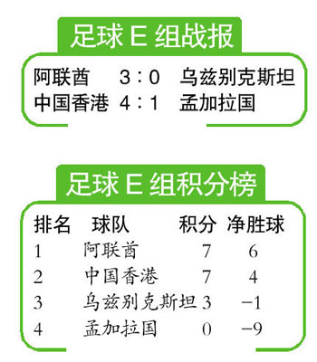 昨天(11日)下午,2010年廣州亞運會結束了男足比賽E組的較量,中國香港隊在花都體育場以4比1大勝孟加拉隊,小組賽3戰2勝1平積7分,雖然因凈勝球的劣勢獲得小組次名,但卻是時隔52年之后再次在亞運會的足球比賽中出線晉級淘汰賽。