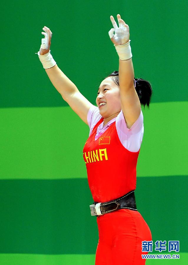 8月13日,肖鴻宇在比賽后向觀眾致意。當(dāng)日,在深圳市體育運(yùn)動(dòng)學(xué)校綜合訓(xùn)練館舉行的第26屆世界大學(xué)生夏季運(yùn)動(dòng)會(huì)女子48公斤級(jí)舉重比賽中,中國(guó)選手肖鴻宇以總成績(jī)188公斤獲得冠軍。新華社記者王頌攝