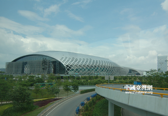遙望深圳灣體育中心“春繭”。(中國臺灣網(wǎng) 田云鵬 攝)