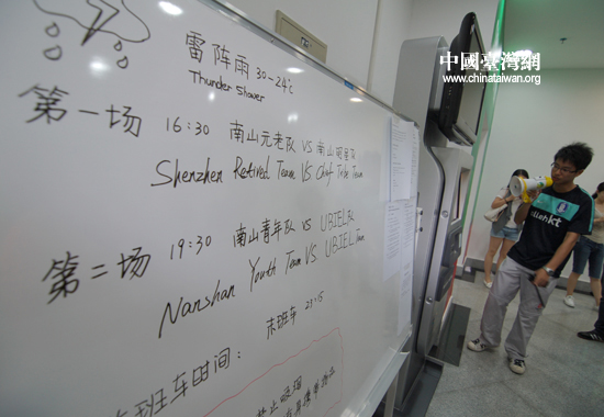 體育場內白板上記錄著比賽場次 (中國臺灣網 田云鵬 攝)
