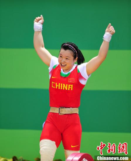 8月14日,第26屆世界大學(xué)生運動會在中國深圳進入到第二個比賽日。在女子舉重53公斤級A組決賽中,中國選手紀靜抓舉100公斤平世界青年紀錄,挺舉122公斤創(chuàng)個人最佳,最終以總成績222公斤勇奪冠軍。中華臺北選手許淑凈和泰國選手拜菲塔克分獲亞軍和季軍,她們的成績分別是207公斤和205公斤。中新社發(fā) 柯小軍 攝