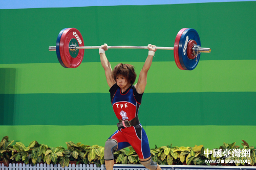 中華臺北選手許淑凈在女子53公斤級舉重比賽中摘得銀牌。(中國臺灣網(wǎng) 于斯文 攝)