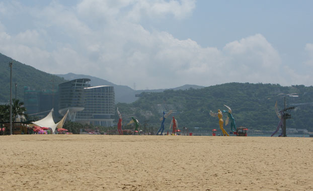 沙灘排球場(chǎng)上設(shè)在風(fēng)景如畫的大梅沙海灘上。共有8片場(chǎng)地,每片場(chǎng)地為26m x18m;設(shè)置了臨時(shí)辦公區(qū)、候檢區(qū)、安檢區(qū)、中心機(jī)房、物流倉儲(chǔ)間等多處活動(dòng)板房及篷房,共約3500平方;搭建臨時(shí)看臺(tái)座位約2100個(gè)。