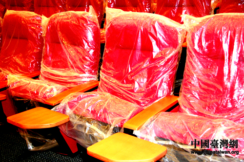 新聞發布廳的椅子設有可折疊的寫字桌板,服務意識到位