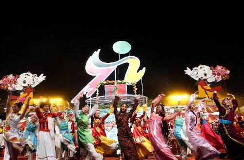 9月6日,在銀川寧夏體育場舉行的民運會開幕式文藝表演中,演員們伴著樂曲載歌載舞。當日,第七屆全國少數(shù)民族傳統(tǒng)體育運動會在寧夏回族自治區(qū)首府銀川市隆重開幕。新華社記者攝
