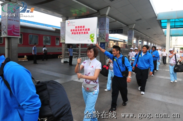 9月4日上午7點27分,第九屆全國少數民族傳統體育運動會西藏自治區代表團摔跤隊和押加隊一行18人繼先期到達的馬術隊之后順利抵達貴陽。這是此次運動會組委會接待部按工作計劃成立火車站迎送指揮部,并舉行演練后正式迎來的首批來賓。標志著第九屆民族運動會的接待迎接工作正式拉開帷幕。